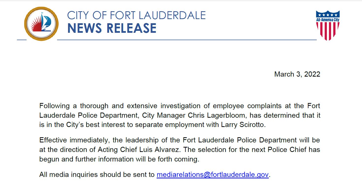 Fort Lauderdale Fires Chief Larry Scirotto